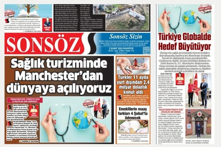 Türkiye’nin sağlık turizminde küresel ligde söz sahibi olma hedefi, 2 Şubat 2025 tarihli gazetenin ilk sayfasında