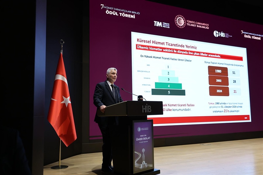 Ticaret Bakanı Bolat, küresel hizmet ihracatında yaşanan hızlı artıştan bahsederek, Türkiye’nin de bu artıştan pay aldığını, Kovid-19 döneminde 39 milyar dolara kadar düşen hizmetler ihracatının 2024’te 117 milyar dolara yükseldiğini söyledi.