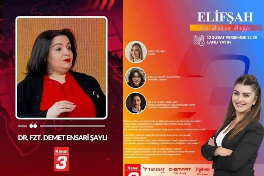 Uluslararası Sağlık Turizmi Enstitüsü Danışma Kurulu Üyesi Uzman Fizyoterapist Dr. Demet Ensari Şaylı, Kanal 3’te yayınlanan Elifşah ile Kahve Keyfi programında sağlık turizminin kapsamı, Türkiye’nin küresel konumu ve yeni yönetmelik sürecine ilişkin değerlendirmelerde bulundu.