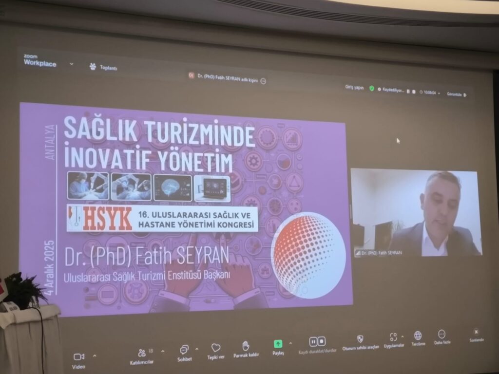 Kongre kapsamında gerçekleştirilen panelde, Uluslararası Sağlık Turizmi Enstitüsü tarafından hazırlanan “Sağlık Turizminde İnovatif Yönetim” başlıklı sunum da kamuoyuyla paylaşıldı. Sunum, Enstitü Başkanı Dr. (PhD) Fatih Seyran tarafından hazırlandı.